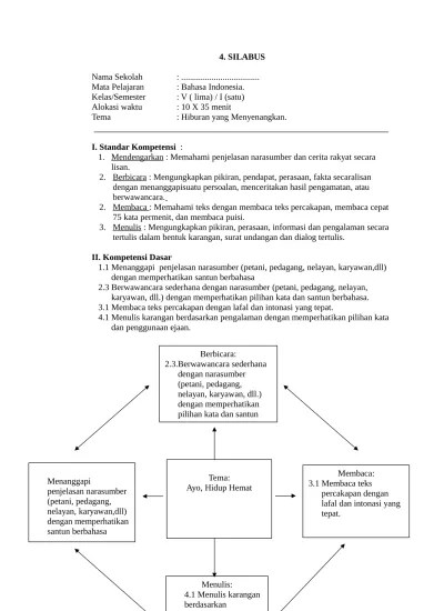 Silabus bahasa indonesia kelas 4 sd semester 2.