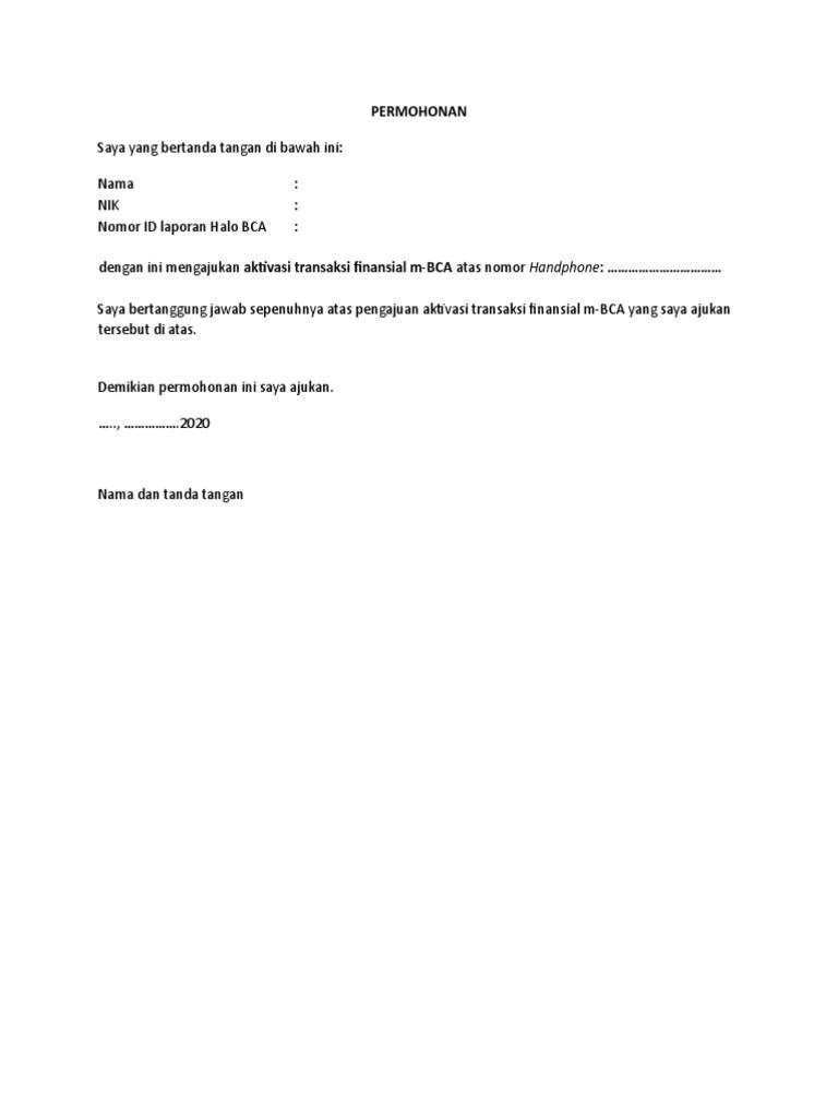 Surat Permohonan Pengajuan Aktivasi Transaksi Finansial M-Bca - Contoh Surat Pengajuan Aktivasi Finansial Bca - Guru Paud - M entep.i keuangan rep u b li k i n d o n e s i a ,.